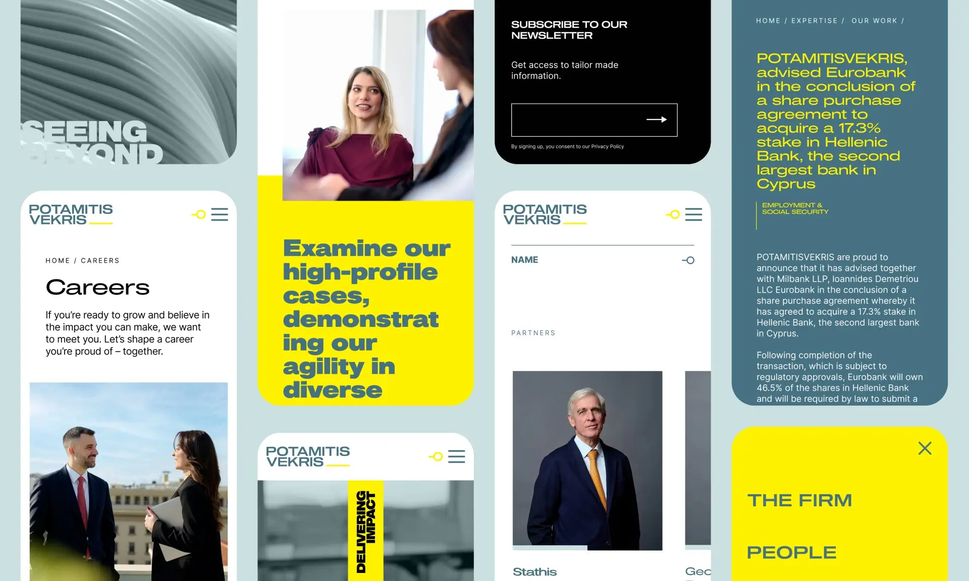 As part of our collaboration with prestigious law firm POTAMITISVEKRIS, INTERWEAVE was called upon to create a new website which embodies the Firm’s refreshed brand image and updated strategy. To achieve its goals, the site needed to address the universal requirements of modern web design while also fulfilling digital needs specific to the context of a law firm.