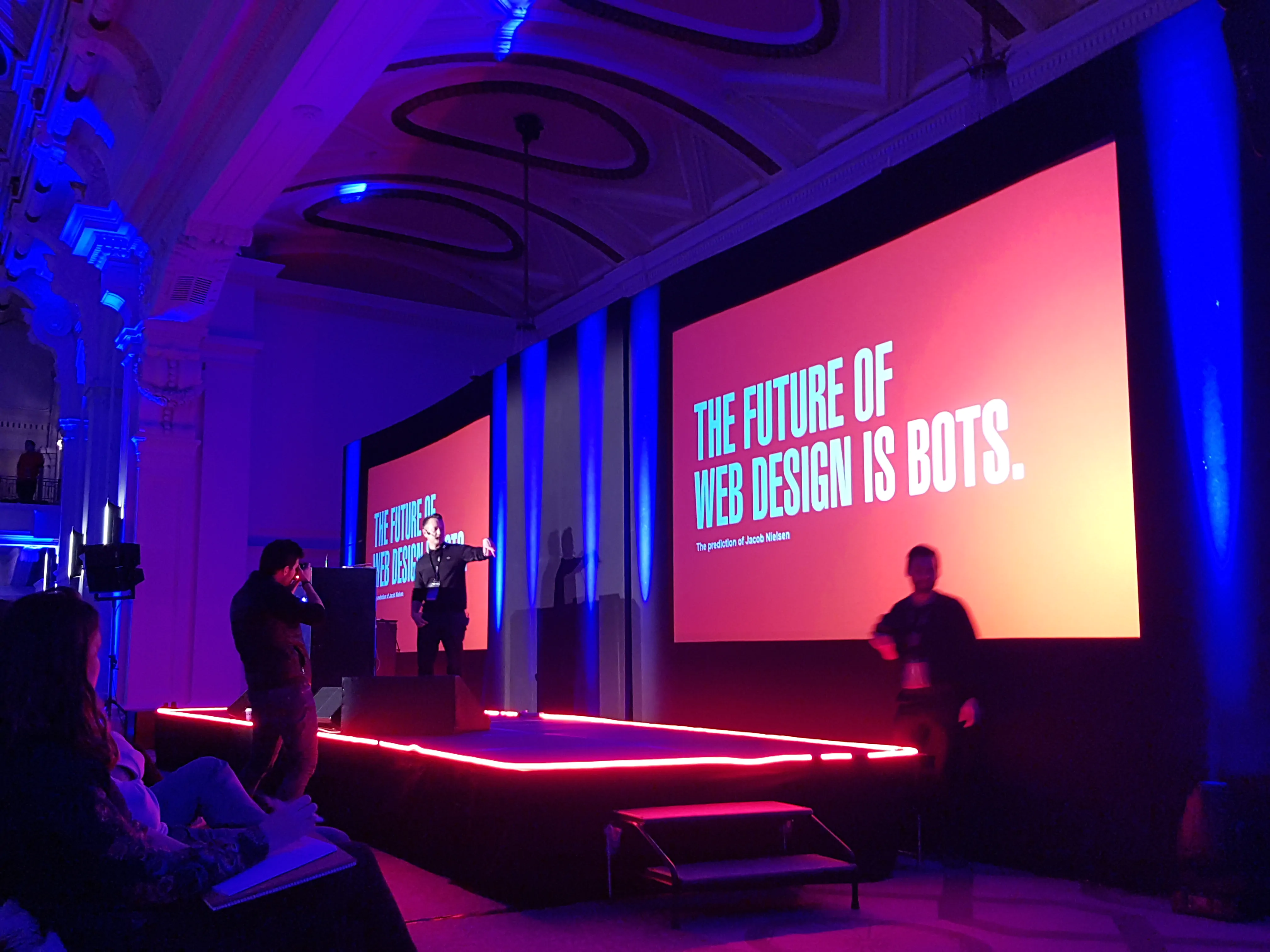 We watched some really inspiring talks from Adrian Zumbrunnen – Google, Drew Huddleston – AKQA, Vitaly Friedman – Smashing Magazine, Keiichi Matsuda – Hyper Reality Designer and Film-maker, Andrew Herzod – Google Creative Labs, Hawraf, Nick Sprinz – Ustwo, Stefanie Posavec – Data-centred designer, Aude Degrassat – Huge, Benoit Rondeux – EPIC Agency, JB Grasset – Ultranoir and Monochrome, Seb Lester – Artist and Designer and many many more.
